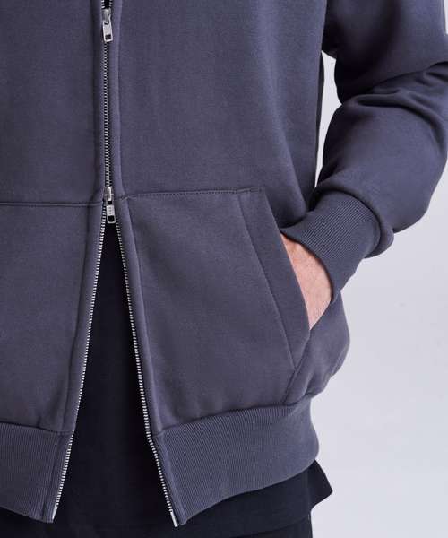 Oversized fit. Heavyweight. Three-panelled double-fabric hood. Double-end YKK zip. No drawcords. Ribbed cuffs and hem. Brushed inner fleece. Tear-away label. Contains recycled polyester.