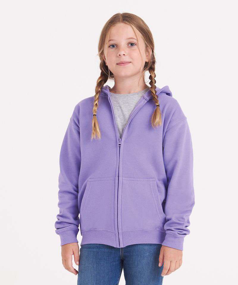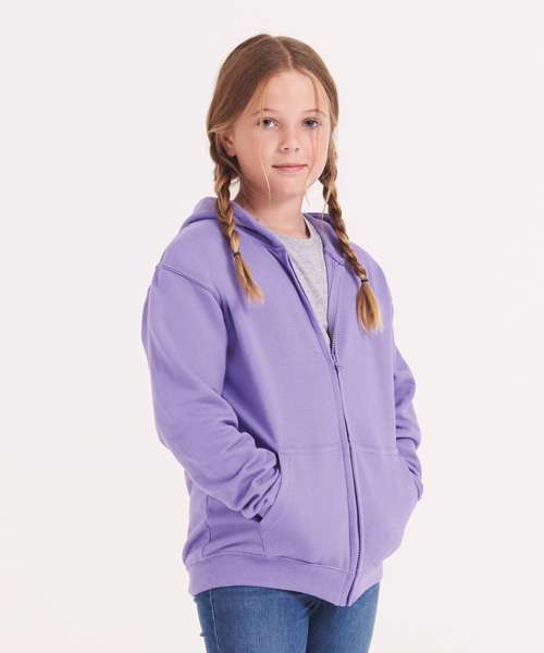 This bold hooded top for kids is ideal for sports and dance classes. Designed with comfort in mind, it features a full zip and is crafted with a soft cotton faced fabric ideal for decoration purposes.