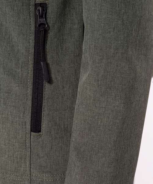 95% polyester/5% elastane. Softshell 3-layer bonded fabric. 3000 gsm/24h breathable and 8000 mm water-resistant. 95% polyester/5% elastane outer layer, performance membrane mid layer and micro fleece thermal inner layer. Zip through front. 2 zipped side pockets. 1 zipped left sleeve pocket.