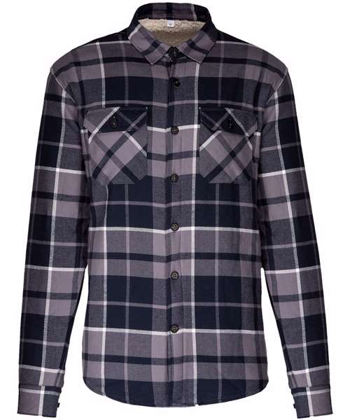 100% cotton flannel. Sherpa-lined body in 100% polyester. Lined and padded sleeves in 100% polyester taffeta. Very soft and warm shirt jacket. 2 flap chest pockets. Classic button placket. Adjustable buttoned cuffs. Rounded hem. No brand label at neck, only size tag for easy relabelling. Certified STANDARD 100 by OEKO-TEX® N° CQ 1007/8, IFTH.