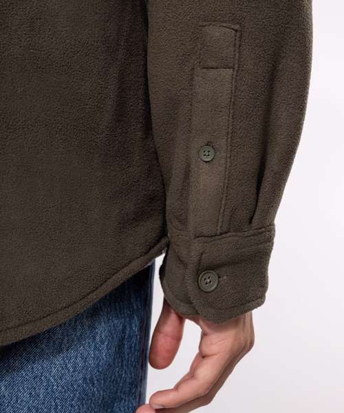 100% polyester. Microfleece outer and sherpa inner. Very soft and warm overshirt. 2 flap chest pockets. Classic placket (2 spare buttons). Adjustable buttoned cuffs. Rounded hem. Certifié STANDARD 100 by OEKO-TEX®N° CQ1007/8, IFTH.
