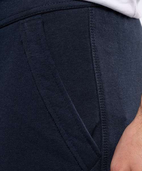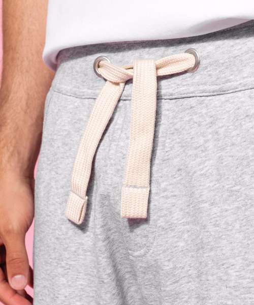 80% Combed Cotton / 20% Polyester. Low shrinkage French Terry. Deep waistband with drawcord. 2 front pockets with raw edges. 1 rear pocket. Twin needle finishing. BSCI certified. Oeko-Tex certified.