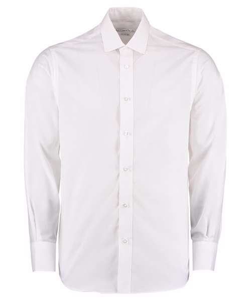 Fused stand-up semi cutaway collar with removable collar bones. Easy-iron. Two button cuffs. Double-stitched side and sleeve seams. Spare button. Kustom Kit® woven back neck label. Single-stitched yoke and armholes. Rounded hem.