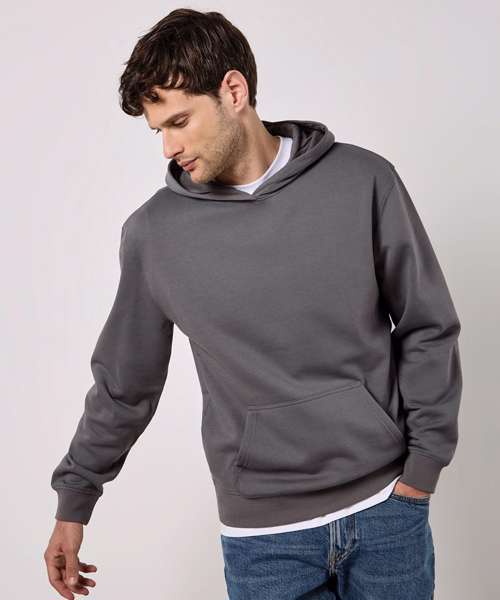 Superwash® 60 fabric. Raised cordless hood with self-coloured Jersey lining. Self-coloured back neck Jersey binding. Full-needle, double-layered cuff and welt. Kangaroo pocket with double topstitching and bar-tacked openings for strength. Double-edged, edge-stitched armholes, cuff and welt. Taped shoulder seams. Tear-out back neck label.