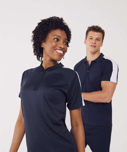 Stay cool and dry in this breathable, moisture-wicking team polo shirt. Made from 100% polyester, it features a flat knit collar, three-button placket and contrast colour panels, plus raglan shoulders for freedom of movement. It’s easy to wash and rebrand, with a tear-away label. Ideal for sports and active wear.