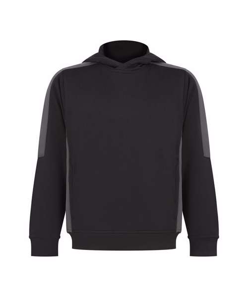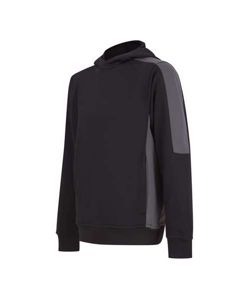 Unisex kids’ hoodie. Contrast sleeves and side panelling on contrast only. Ribbed cuffs and hem. Crossover hood neck at centre front. Zipped welt pocket in front panel side seam. Three-piece hood. Offered in contrast and solid colours. Tear-out label.