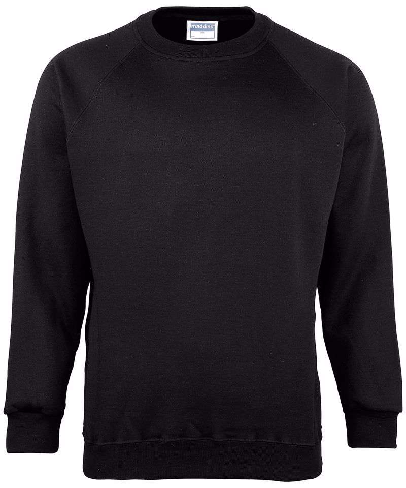 Easycare crew neck raglan sleeve sweatshirt with coverseam finish around neck, welt and raglan. Herringbone taped neck. Woven label.