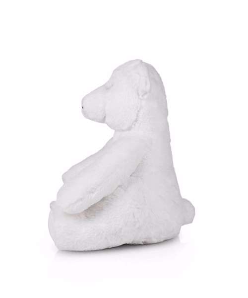 Printme Eco Polar Bear is made from 100% recycled polyester. Soft plush white tummy for vinyl and sublimation printing. Can also be worn with the medium-size t-shirts and jumpers from the Mumbles Clothing collection. Complies with EN71 European Toy Safety regulations. Remove all hang tags and their fasteners before giving these items to a child. Suitable for all ages.