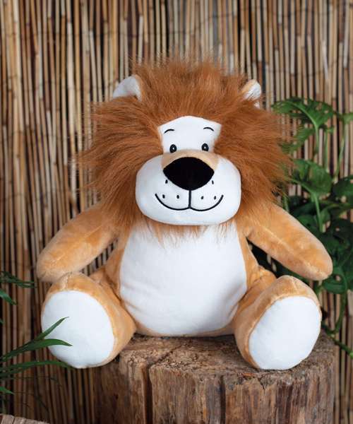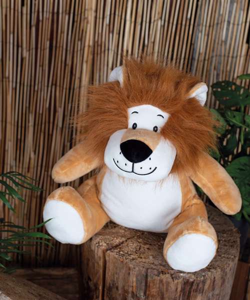 Soft plush Zippie lion. Contrast feet, nose, and horns. Sewn eyes and mouth. Contrast mane and tail. White panel on tummy is perfect for decoration. Zip access on base for direct access onto the tummy for decoration. Removable inner stuffing. Can be embroidered, printed and sublimation printed. Complies with EN71 European Toy Safety regulations. Remove all hang tags and their fasteners before giving these items to a child. Suitable for all ages.