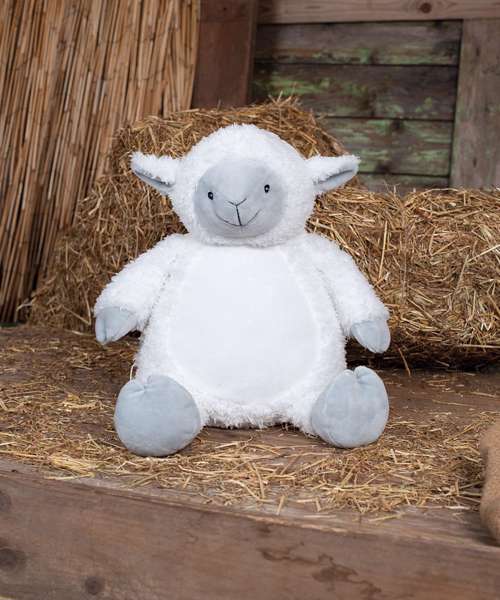 Soft plush Zippie Lamb with contrast face, hands, feet, and inner ear. Sewn eyes and mouth. White panel on tummy, perfect for decoration. Zip access on base for direct access onto the tummy for decoration. Removable inner stuffing. Can be embroidered, vinyl, and sublimation printed. Complies with EN71 European Toy Safety regulations. Remove all hang tags and their fasteners before giving these items to a child. Suitable for all ages.