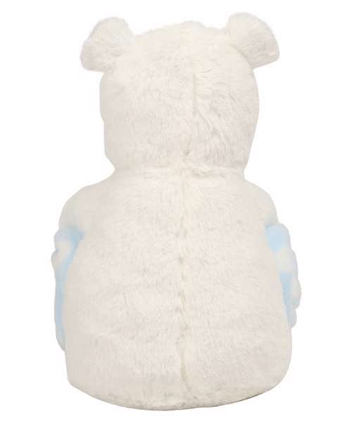 Super soft white fur coats the hippo toy with little hints of blue or pink to suit any little ones or a new born. Rolled up, clutched under the hippo’s arms is a cuddly comfort blanket with an adorable spot print, perfect to embroider or print names onto.