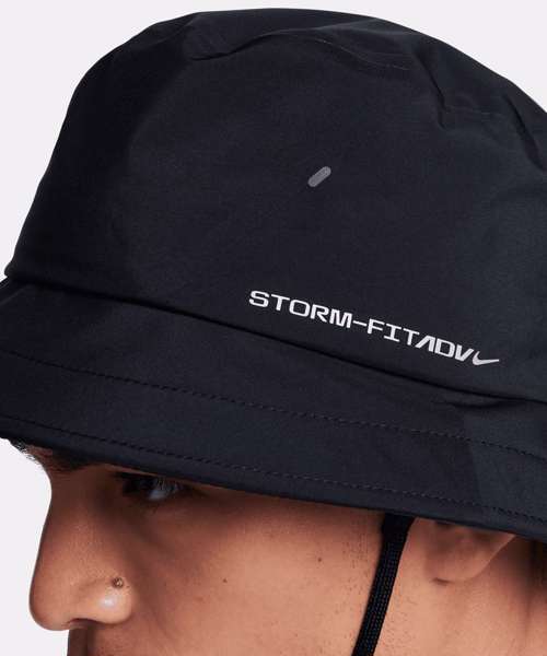 The Nike Storm-FIT ADV technology of the Nike Apex bucket hat combines windproof and waterproof fabric with advanced engineering and features to help keep you comfortable in harsh weather conditions. Waterproof woven fabric with a seam-sealed design helps keep your head dry in wet conditions. The detachable drawcord with cord lock cinches up and down for a fit that feels just right.