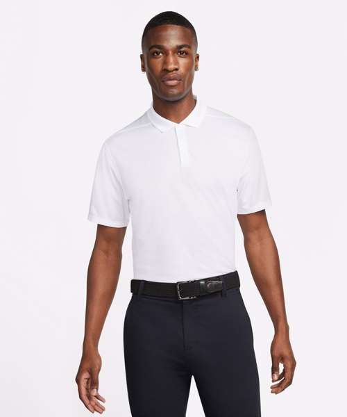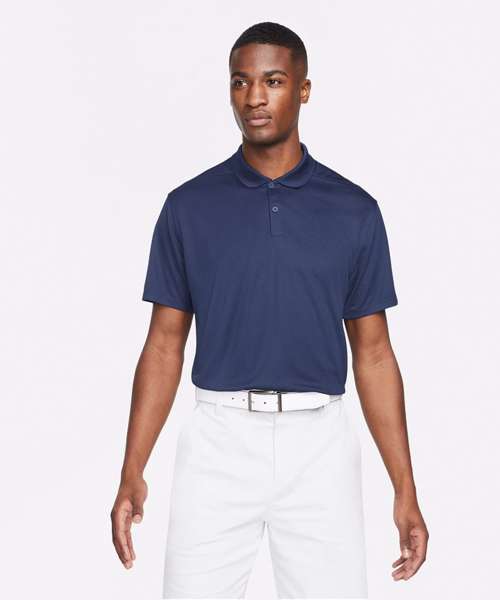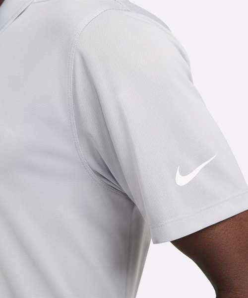 Nike Dri-FIT technology moves sweat away from your skin for quicker evaporation, helping you stay dry and comfortable. Shoulder seams are rolled forward so you can fully power through your swing. Collar is ribbed to help prevent curling. Swoosh is on the left sleeve so you can easily apply custom graphics like a logo or a crest to the chest.