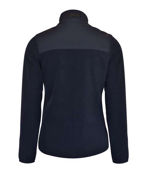 Fleece: 100% Recycled polyester. Contrast fabric: 100% Polyester (yoke, pockets and outside collar)