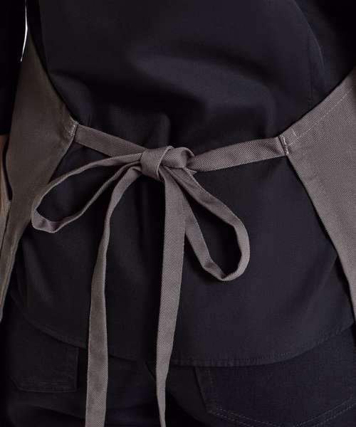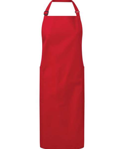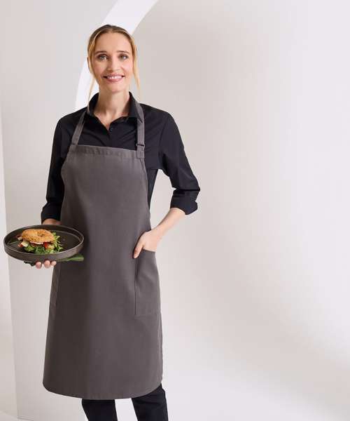 A heavyweight full length bib apron made from certified recycled polyester and certified organic cotton. Featuring two slanted side pockets and fully height adjustable with a buckle on the neckband.