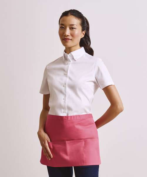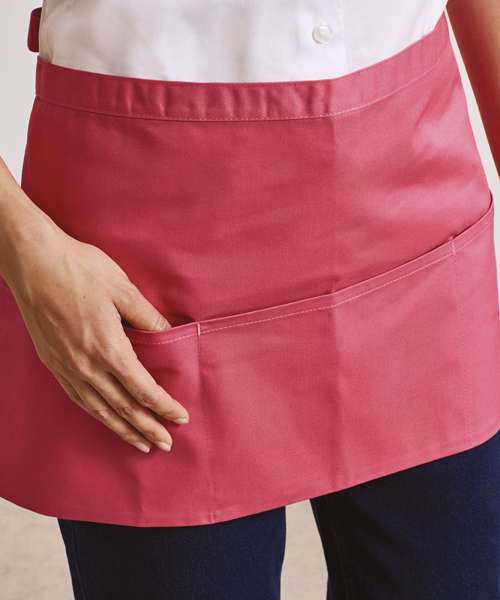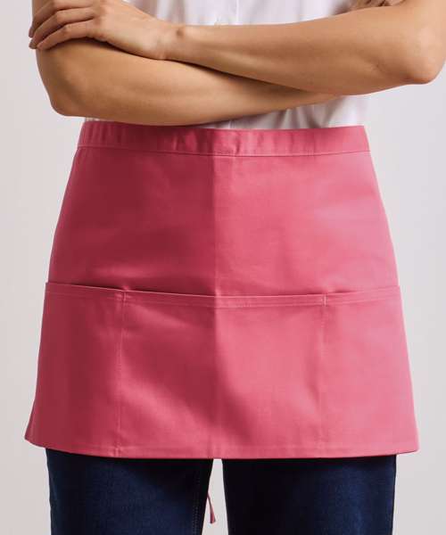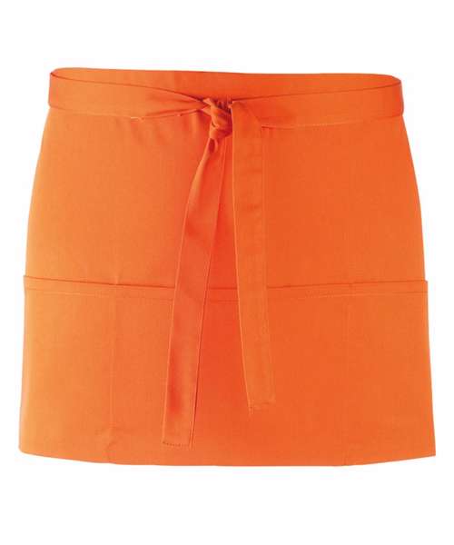 A popular style of apron seen in many bars and restaurants, this short waist apron has three open pockets and comes in 24 colours from the Premier 'Colours Collection.' The pockets are great for carrying payments terminals and tablet devices.