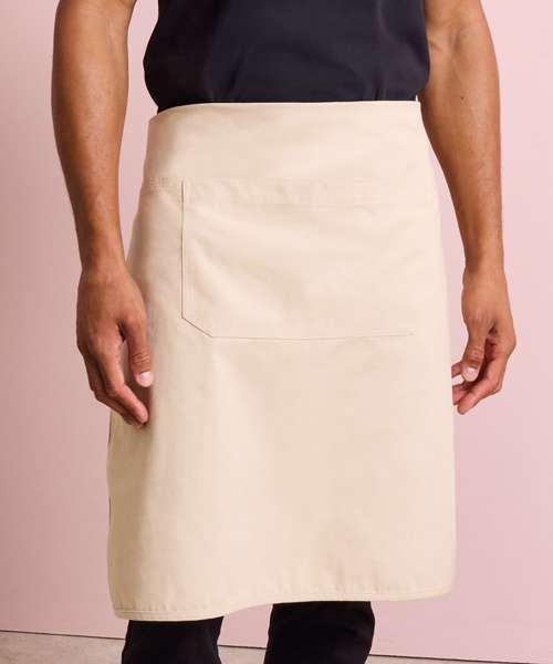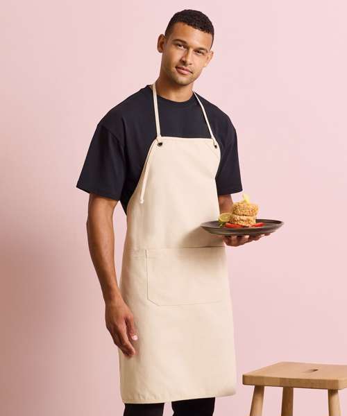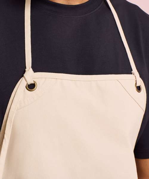 This artisan-inspired apron is designed so it can be worn in bib or waist style. Rounded edges create soft lines, whilst the eyelets provide an ‘industrial-chic’ feel. Adjust the overall height with a knotted neckband and store your essentials in the double centre pocket. The heavyweight canvas is a durable fabric that looks and feels premium, making this the perfect apron for any venue passionate about their trade. Made with certified recycled polyester.