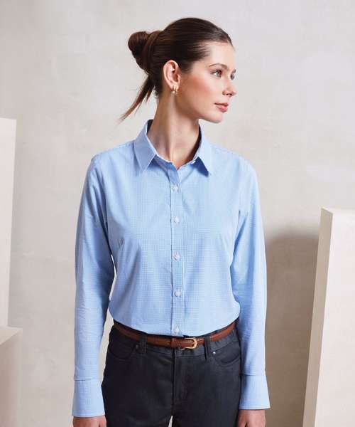 PR320: Women's Microcheck (Gingham) long sleeve cotton shirt