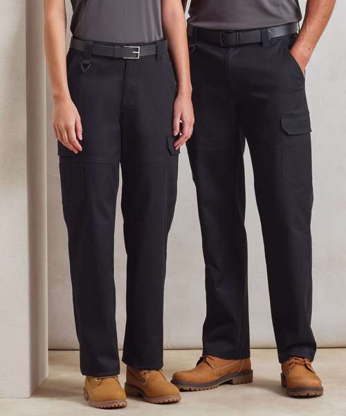 Hard-wearing and durable cargo trousers designed with Premier’s Stretchchecker fabric for ease of movement. Built with practicality in mind, it features multiple pockets and a useful D-ring for hanging essentials. These trousers are a popular choice, worn by those in manufacturing, construction and maintenance roles, due to their hard-wearing fabric. Unisex design, suitable for your entire workforce. Available in two colours, two leg lengths and in a wide range of sizes. Made with certified recycled polyester.