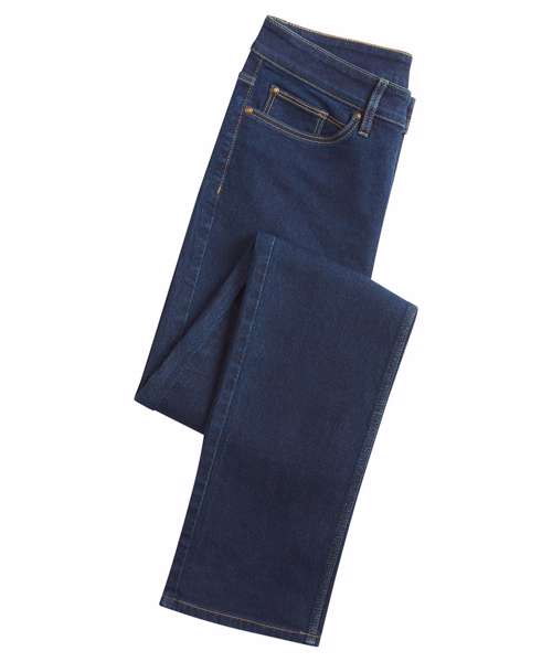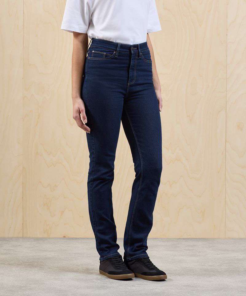 Women’s classic straight-leg jeans with a fade-resistant finish tested to 20 washes. Durable fabric fit for everyday comfort with elastane for stretch. Designed with belt loops, a metal button and a covered zip fly. Functional side-stitched pockets, rivets and stitched coin pocket with reinforced bar tacking. Stitched v-shape yoke and two patch pockets to the back. Classic jean styling with twin-needle stitching and metal hardware. Responsible fabric sourcing. Always Indigo contains certified recycled polyester. Available in regular leg (31"/79cm) and long leg (34"/86cm).
