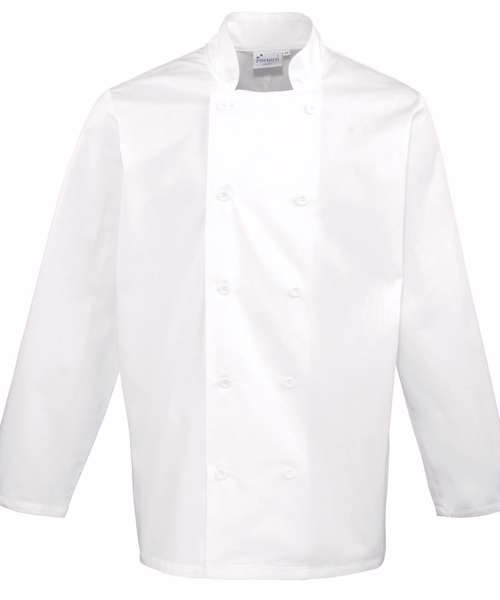 An easycare long sleeve chef's jacket with a ten-button wrap over style fastening. To withstand the demands of repeated washing, the buttons are long-life resin buttons. A smart jacket for chefs with a mandarin collar for a streamlined look. Available in black, white and steel across a wide range of sizes.