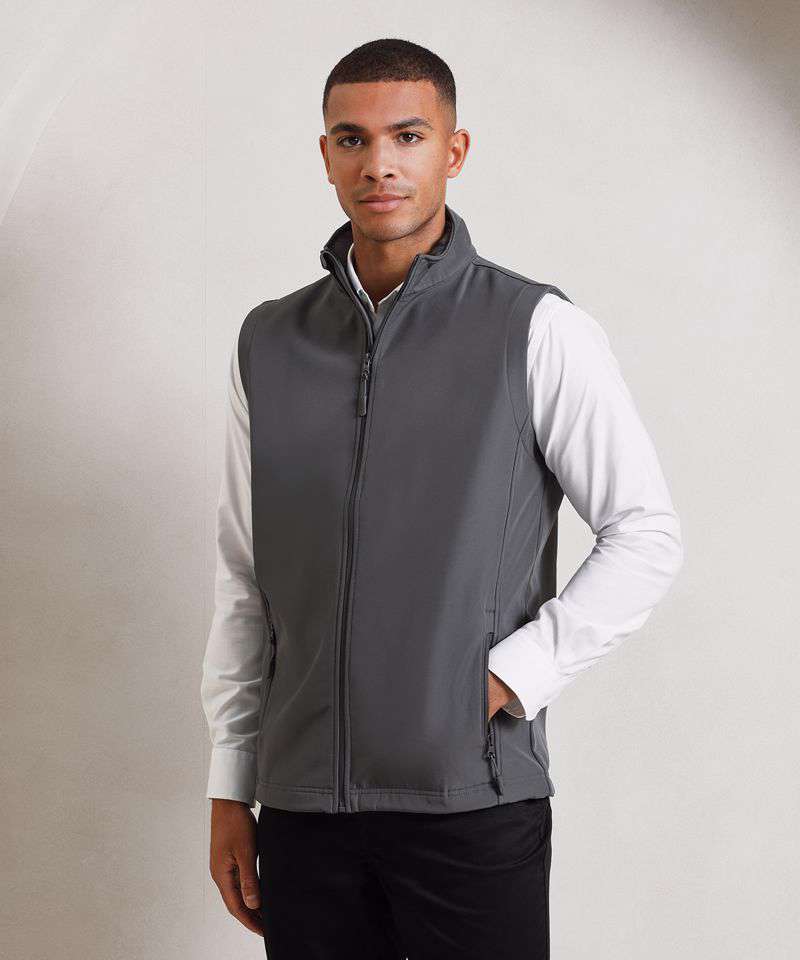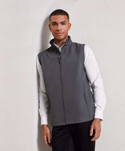 A men’s two-layer softshell gilet carrying Premier’s Windchecker®️ trademark for wind and water resistance through the fabric. Made with 100% certified recycled polyester with a bonded fleece inner layer, this zip-through softshell bodywarmer features handy zipped side pockets and an elasticated drawcord hem for fit. A great versatile outer layer for casual and corporate dressing for men.