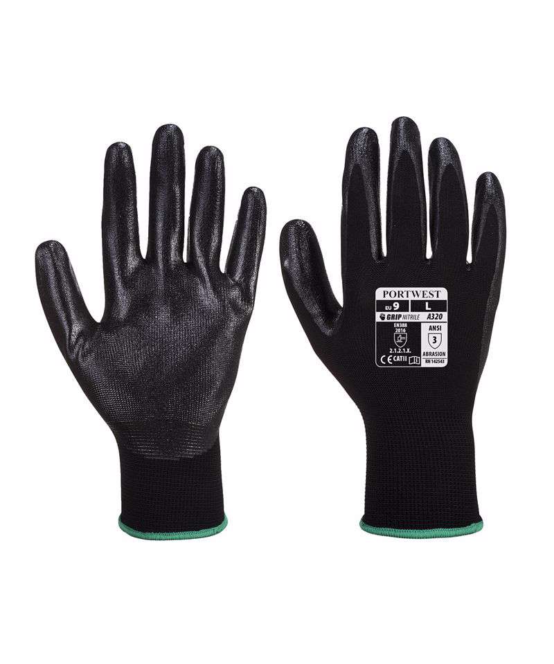 Recommended for precise operation requiring maximum dexterity. The Dexti grip is the top choice for general assembly work and precision parts handling where surface oil is present. The breathable seamless liner offers maximum dexterity and a second skin snug fit. Available in black to prolong glove life. Certified to EN388:2016 (2.1.2.1.X) and EN420.