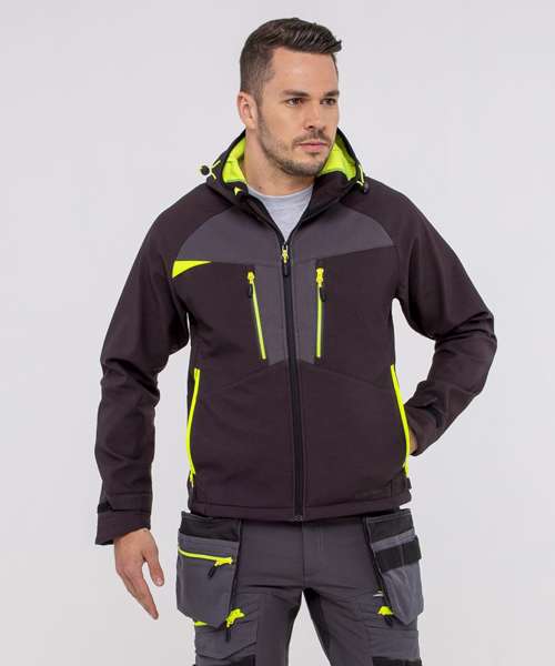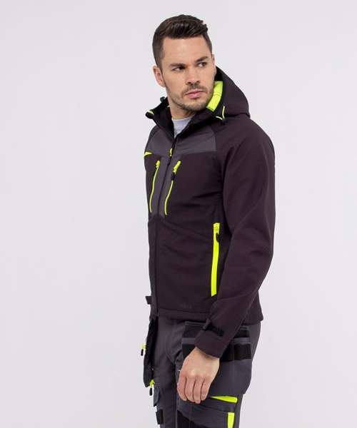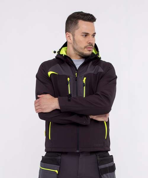 The softshell jacket is precision engineered using a revolutionary breathable waterproof and windproof ripstop fabric. Its sports inspired design includes longer back length dynamic shaped sleeves adjustable cuffs reflective trims and multiple secure pockets for ample storage. An ideal choice for the modern worker.