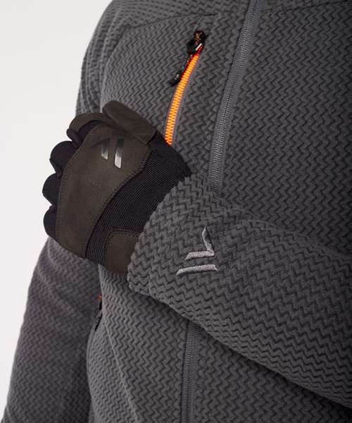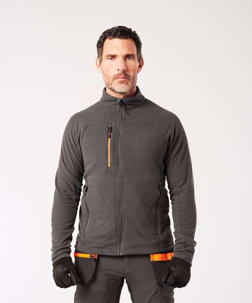 The EV4 Textured fleece is made from high-quality jacquard fleece, providing stretch and enhanced ergonomics. The perfect weight of fabric keeps you warm in winter, whilst being able to layer. Features include secure chest pockets, side pocket zips and elasticated cuffs for a secure fit.