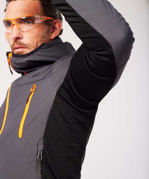The EV4 Insulated hybrid jacket incorporates an ergonomic body-mapped design to balance insulation and comfort, helping to keep the core body area warm, while the innovative ActiReach™ underarm panel increases arm and torso mobility to provide unrestricted stretch and movement. Two zipped side entry and two zipped chest pockets offer plenty of secure storage space.