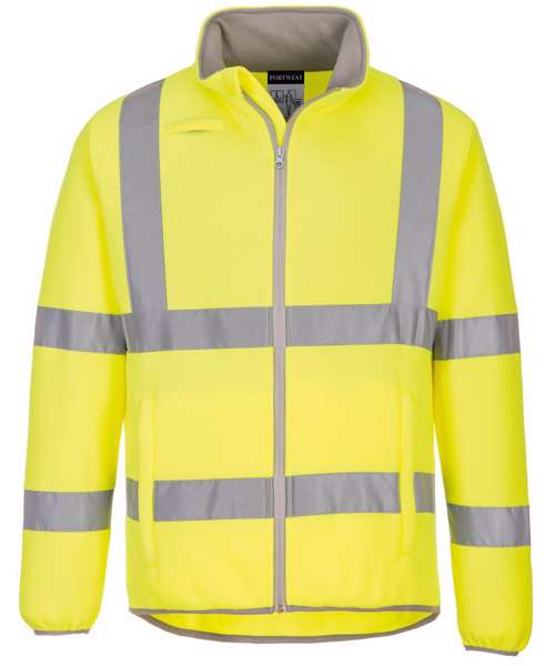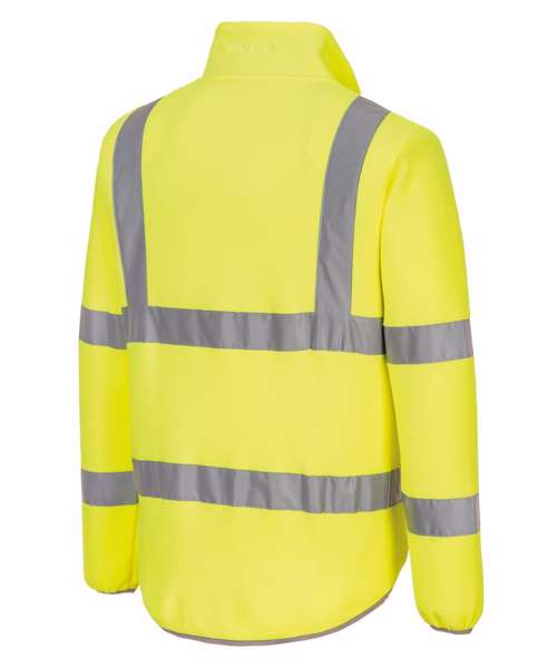 High-visibility fleece jacket offers great warmth and comfort. 100% recycled polyester, with a high-quality anti-pill finish, maintains the look of the garment for longer. Features include two secure side pockets with zips and an elasticated drawcord waist for a more comfortable fit. EN ISO 20471 Class 3. RIS 3279 TOM Issue 2 (Orange only).