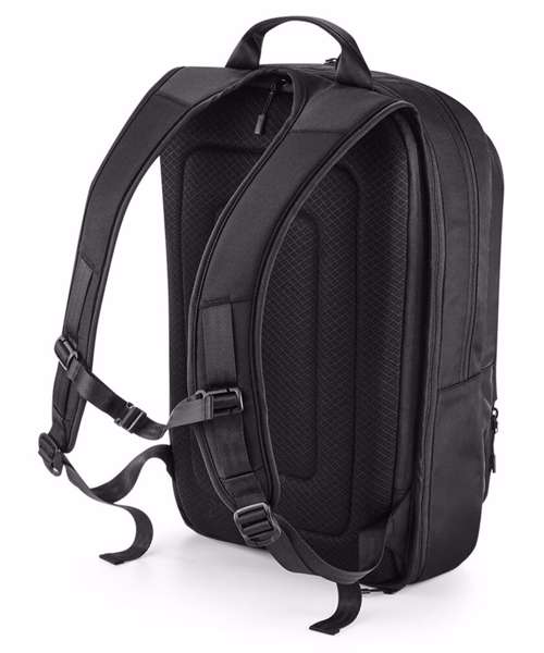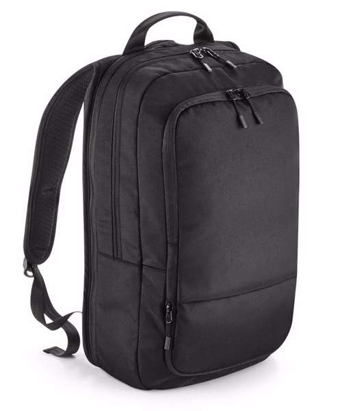 TearAway label for ease of rebranding. Water-repellent, abrasion resistant fabric. Minimalist design with adaptable functionality. Laptop compatible up to 15.6". External access secure padded laptop compartment. Zippered front compartments for flexible organisation. Full HD Polyester lining. Internal elastic bottle holder. Expandable capacity from 20-25 litres. Breathable padded mesh back panel. High density seatbelt webbing. Reach certified.