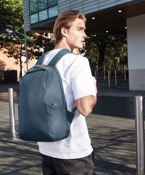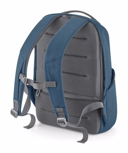 Contains 100% GRS-certified recycled polyester, certified by Control Union CU811033. Recycled Polyester made from 100% rPET, equivalent to approxImately 7 post-consumer bottles. Hidden-access main compartment. Two external bottle pockets. Multiple internal pockets. Padded laptop compartment, compatible up to 15.6". Discreet zipped back panel pocket with RFID-blocking lining. Pull out ‘anti-grab’ security lanyard. Lockable zip pulls. Ergonomic, breathable padded mesh back panel. Fully adjustable chest strap. Padded grab handle. Durable, water-repellent treatment for increased weather protection. PVC-free. TearAway label for ease of rebranding.