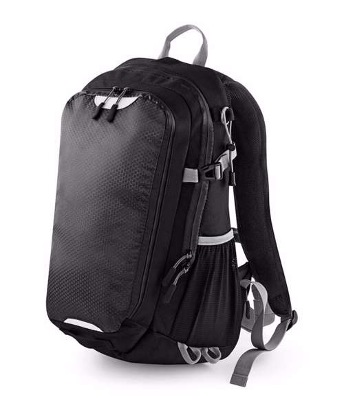 Detachable waterproof rain cover. Laptop compatible up to 15.6". Padded adjustable shoulder straps. Adjustable waist and chest straps. Ergonomic breathable padded mesh back panel. Hydration bladder compatible. Trekking pole attachment points. Compression straps. Elasticated mesh side pockets. Zippered side pocket. Internal mesh pocket. Reflective accents. Back light attachment loop. Grab handle. TearAway label.