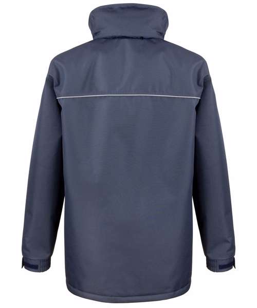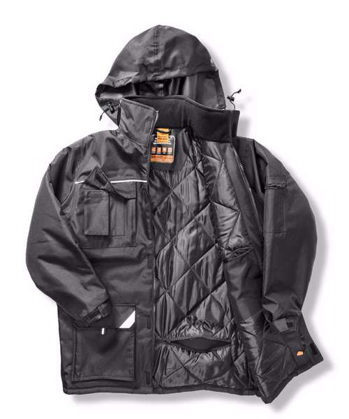 Full front heavy duty zip. Fully taped seams. Tear release storm flap. Concealed hood with adjustable drawcord. Deep front patch pockets, with soft feel microfleece hand warmer packet access. Semi detachable left chest pocket with tear release/stud and zip closure for access or decoration. Multi-feature right chest pocket. Inside chest pocket. Reflective detail across chest and pockets. Elasticated cuff with tear release adjuster. Diamond quilted lining. Interchangeable colour zip pull system. Hanging loop. Soft feel microfleece lined stand-up collar. D Ring. Critical seam twin needling.Decoration Guidelines:Decorating methods: Embroidery & Transfer print. Decorators access point: Outer left chest & Inside lower back.