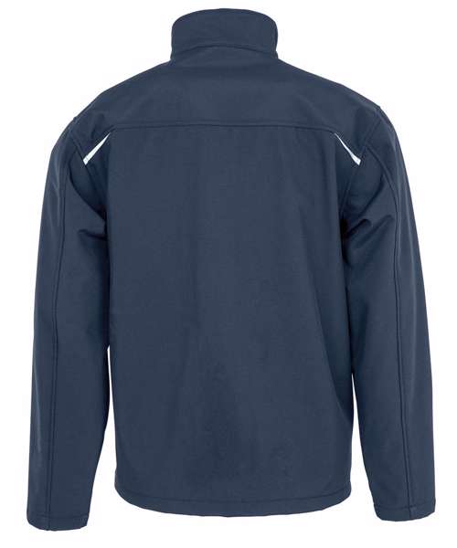 Softshell jacket with full front YKK zip with chin guard and zip pull. Reflective shoulder trim on front and back. Top stitch yoke detail front and back. Zipped chest and front pockets. Shaped body panels. Open cuff and hem. Stand-up collar. Hang loop. TOPGREEN® yarns. PFOA-free.