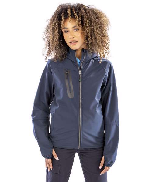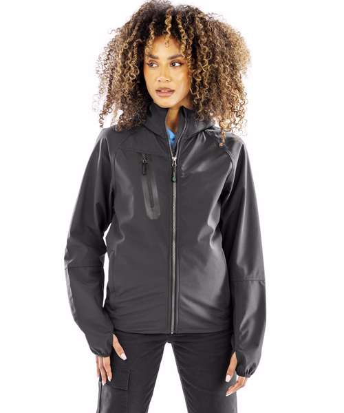 Amazing, soft-feel, hooded unisex softshell jacket with appealing lightweight drape. Ideal for printing.