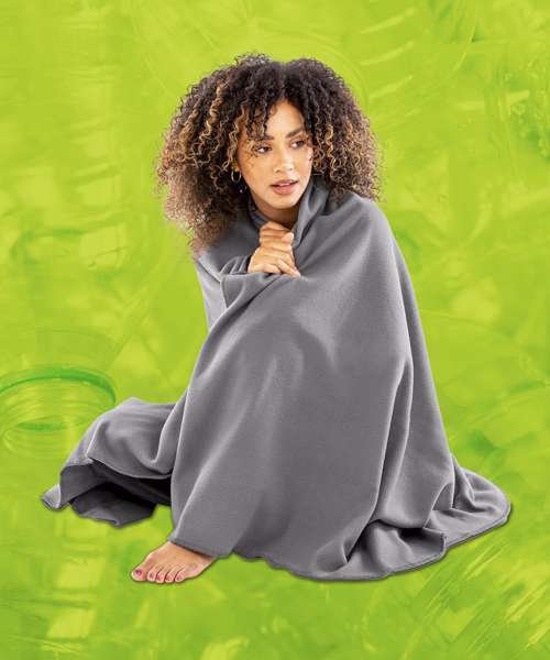 A luxuriously warm, recycled, dense-knit fleece blanket made from a recycled equivalent to conventional yarns – ideal for indoor and outdoor use.