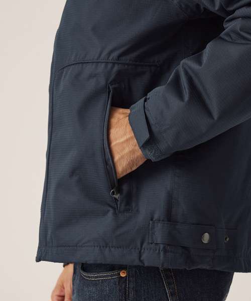 When client meetings take place in the great outdoors, you'll need the smart Hudson jacket for full protection. The waterproof jacket comes with a fleece lining to trap in warmth. Wind won't get a look in with windproof fabric and taped seams. A shockcord hem and adjustable cuffs help to tailor the men's jacket to your fit.