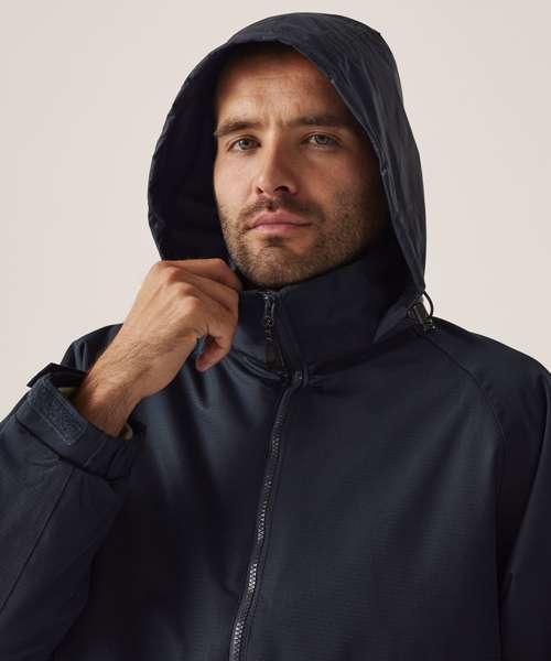 Waterproof Hydrafort polyester matrix dobby fabric with windproof fabric. 200 series anti-pill symmetry fleece lining with taped seams and fleece lined collar. Concealed hood with adjuster. Hook and loop fastening adjustable cuffs. Mobile phone pocket and 2 zipped lower pockets. Studded side adjusters and adjustable shockcord hem. Embroidery access. Thermoguard insulation to sleeves.