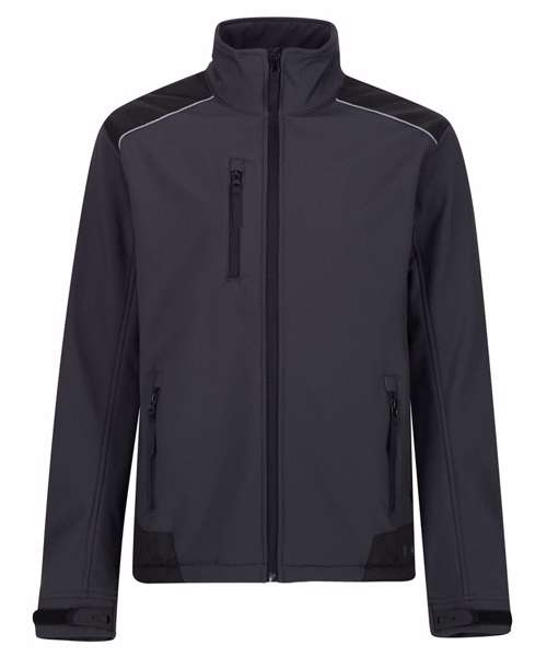 Hardwearing warm-backed woven stretch ripstop softshell fabric. Durazone polyamide overlays at wear points