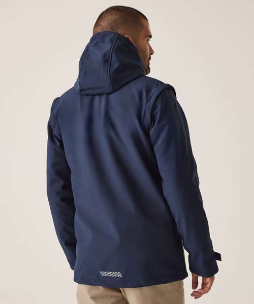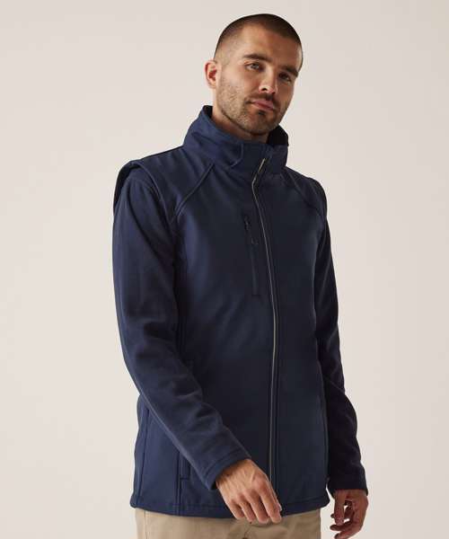 The Erasmus 4-in-1 is perfect for changeable weather. Take off the waterproof softshell to reveal a warming fleece. The softshell also turns into a bodywarmer for restriction-free working.