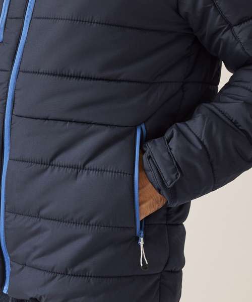 100% polyester ripstop fabric with recycled polyester high warmth padding. Warmloft performance technology insulation. Multiple pockets including two zipped lower pockets, one chest pocket and one inner pocket.