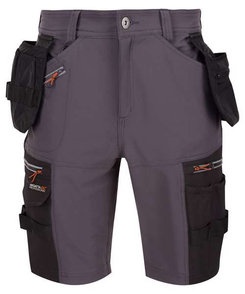 Infiltrate shorts from Regatta Professional are perfect for keeping cool on the job. These men's work shorts, with detachable holster pockets, are made with a stretch fabric to keep you agile, while the water-repellent finish protects from showers and splashes.