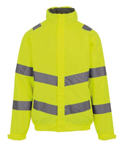 The Hi-vis Pro contract Dover jacket from Regatta Professional is the pinnacle in work performance, with resilient Hydrafort 5000 to provide a waterproof shield. The jacket’s Symmetry fleece lining and Thermoguard insulation keep you warm, while the pack-away hood adds a versatile touch. Revel in ample storage with three spacious pockets, and stay visible in low light conditions with ID Reflection technology that allows colleagues to identify your orientation. This high-performance jacket is presented in a stylish bomber jacket design.