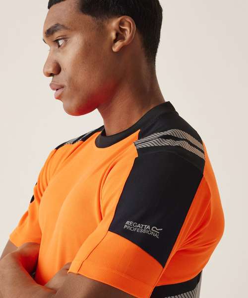The Hi-Vis X-Pro T-shirt (Class 1) from Regatta Professional blends style and innovation. This work t-shirt is engineered with a bamboo and polyester blend for a durable yet soft finish, with underarm mesh panels and an antibacterial finish keeping you fresh. Prioritising safety, it adheres to multiple safety regulations, while the ID reflection technology easily identifies the direction you’re facing, in low-light settings. With UPF 40+, this high-visibility work t-shirt ensures added protection against the sun’s harmful rays.