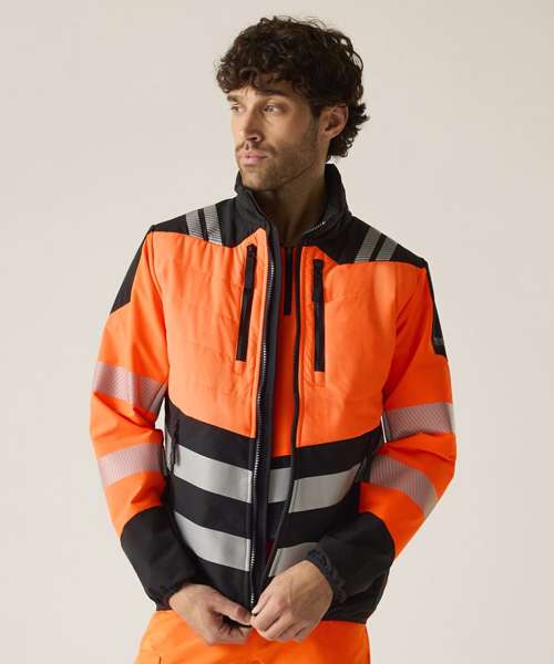 Stay visible and protected in the Hi-vis two-tone thermal jacket from Regatta Professional. Crafted with durable Hydrafort polyester and waterproof to EN ISO 20471 Class 2 standards, it’s built to perform in demanding conditions. Thermoguard insulation adds dependable warmth, while angled ID reflection chevrons improve visibility in low light.