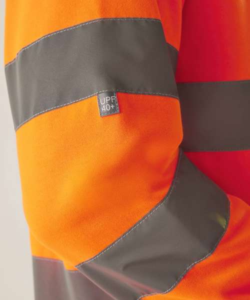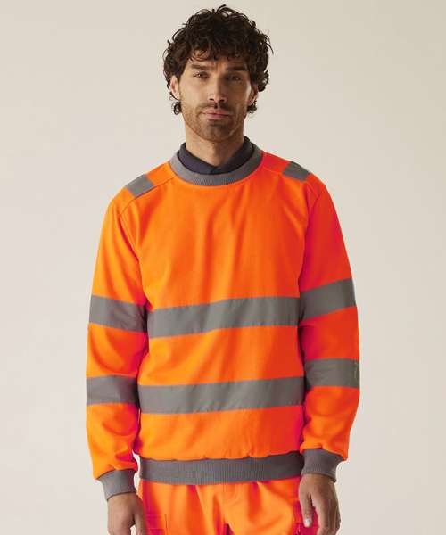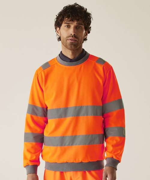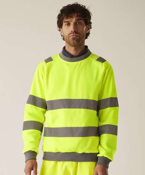 The Hi-vis Pro contract crew neck sweatshirt, from Regatta Professional, delivers comfort, visibility and durability on the job. It’s made from brushed polyester fleece and features a classic crew neck and ribbed trims. Certified for safety.