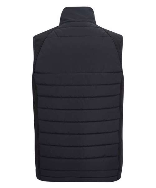 Water-repellent polyester micro poplin. Mechanical stretch softshell on side panels for improved fit and freedom of movement. One zipped chest pocket and two lower zipped pockets. Stretch binding to armholes and hem. Concealed zip entrance in lining for embroidery access. Contains recycled polyester.