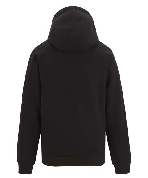 65% Polyester, 35% cotton, brushed back, soft-touch fabric. Graphic print detail. Ribbed cuffs and hem. Grown-on hood with adjusters. Kangaroo pocket to the front.